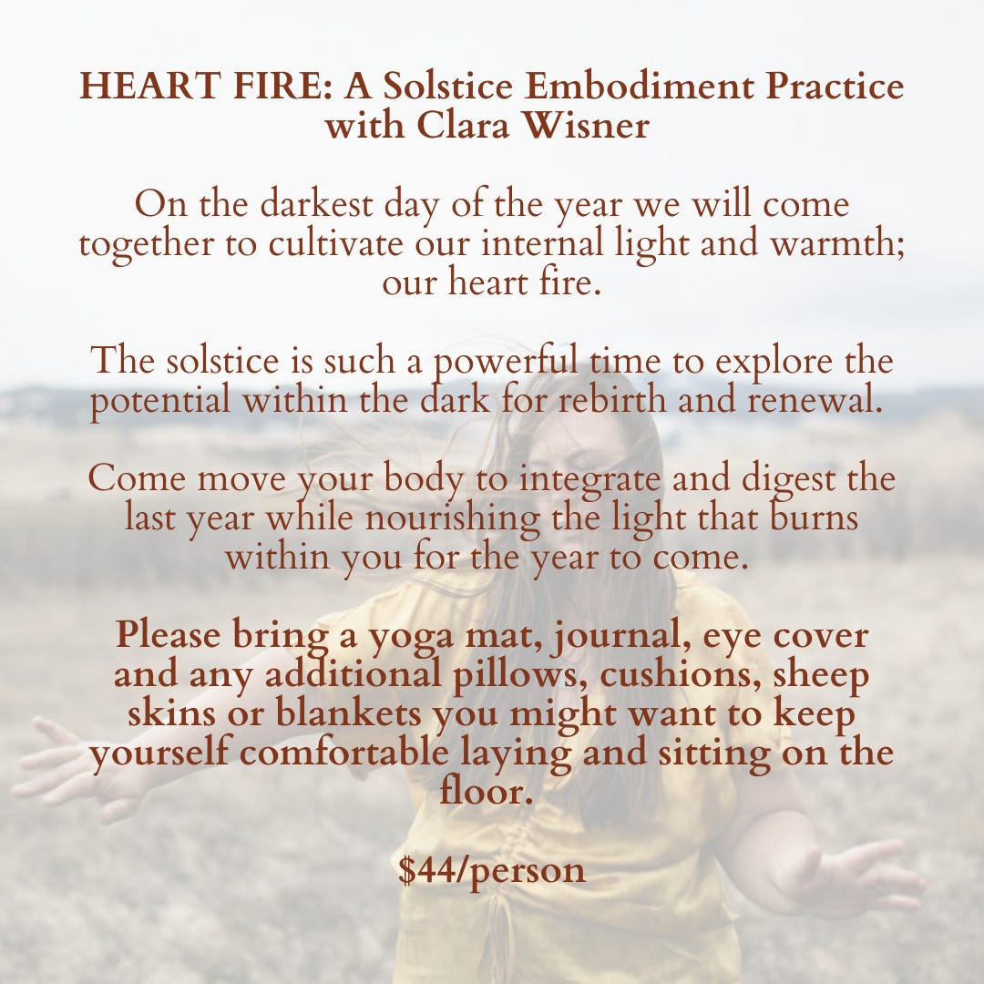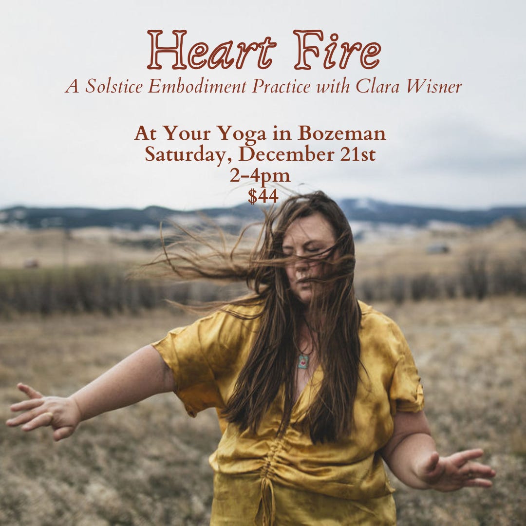 Join me in person for Heart Fire: A Solstice Embodiment Practice at Your Yoga in Bozeman. I’m so looking forward to holding space in person. If you’re local and want to come join us, you can sign up on the Your Yoga website.