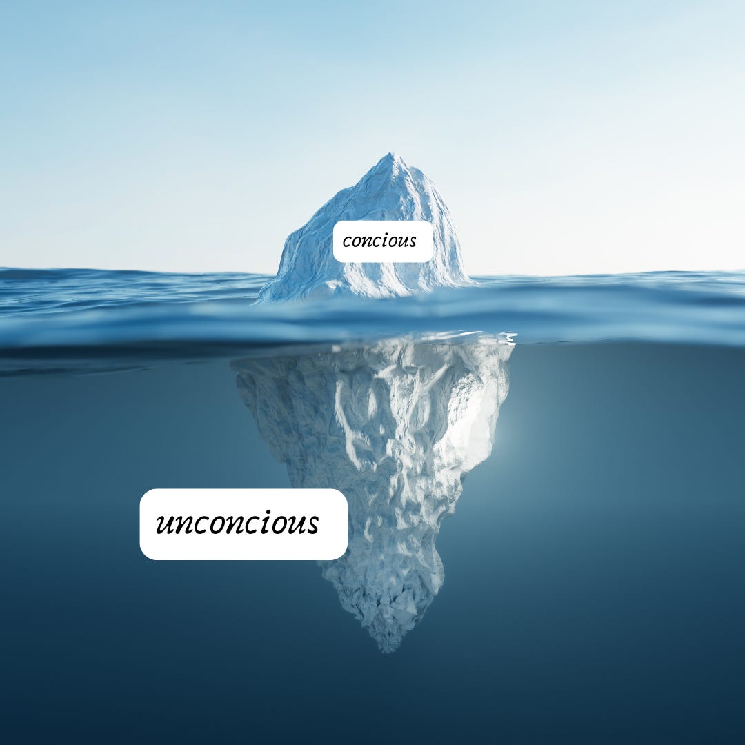 It’s like an iceberg. What we are conciously aware of is the part of the iceberg on the surface of the water. The unconscious is not only the lower, massive, under water part of the iceberg, but the dark oceanic waters as well. Its vastness cannot be overstated.